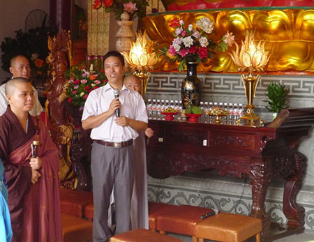 湖北师范学院王浩教授代表义工讲话说,我们能够到东方山法藏寺参加由正慈大和尚倡导的第一届禅茶心旅夏令营非常难得,希望同学们珍惜这个难得的机会,用心观察、用心思考、用心感受师父和居士们的一言一行,希望七天之后你们有一个很大的变化。