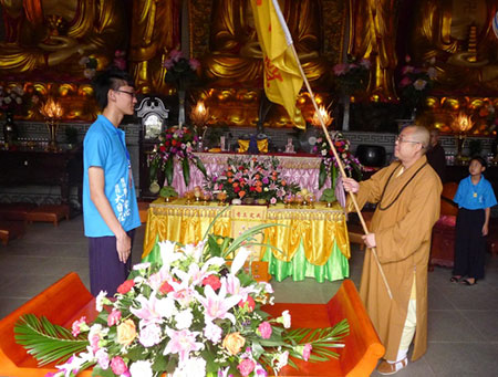 最后正慈法师向学生代表授营旗,仪式圆满结束。