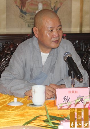 2013年8月22日上午9时40分,无锡惠山寺与苏州寒山寺文化交流会正式开始。参加此次交流会的人员有中国佛教协会常务理事、江苏省佛协副会长兼秘书长、寒山寺兼重元寺方丈秋爽大和尚,无锡市佛教协会副会长、惠山寺方丈玉平大和尚,苏州市民族宗教事务局副局长蒋行顺先生,无锡市民族宗教事务局副局长张慧东先生,江南大学人文学院党委书记方正泉先生,寒山寺文化研究院张君年副院长,苏州和合文化基金会吴声秘书长及惠山寺佛教文化研究中心理事及寒山寺各寮口负责人。会议由寒山寺监院常勇法师主持。