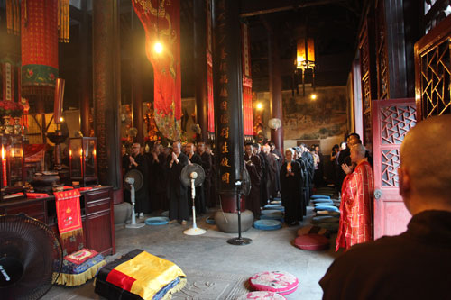 在十方净土专修道场苏州灵岩山寺启建释迦普佛期间,与“千亿圣号大念诵”共同礼请大德法师为十方法界一切众生做圆满回向。 通过如上功德,回向:各各家亲眷属、历代宗亲,现在者业障消除,增福延寿,临终往生净土;过去者径登安养,圆成佛道。并祈:国运昌盛,佛法兴隆,人民安乐,和谐吉祥。 |