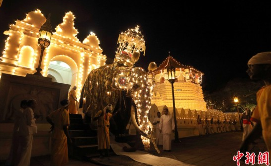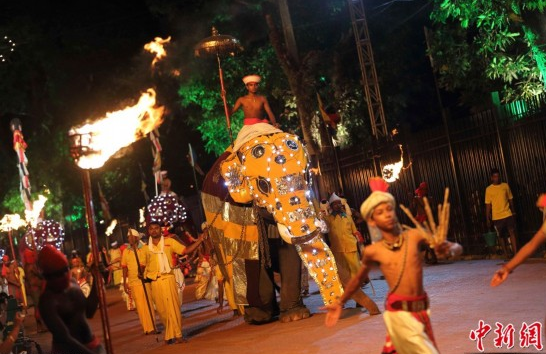 斯里兰卡民众载歌载舞全民庆祝佛牙节开幕