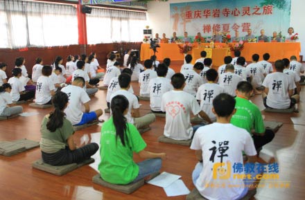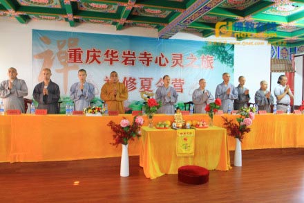 2013年“重庆华岩寺心灵之旅禅修夏令营”大型寺院生活体验活动于8月16日上午8时在华岩寺弘法楼开营。重庆华岩寺方丈道坚法师亲临现场开示,鼓励参营大众在寺院清苦的环境当中放下浮尘烦恼,让身心清净安宁,选择智慧豁达的人生。愿在接下来的几天中,每一位参营者都亲近正法,同沾法益、法喜充满。