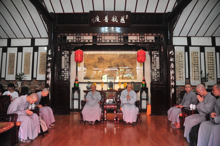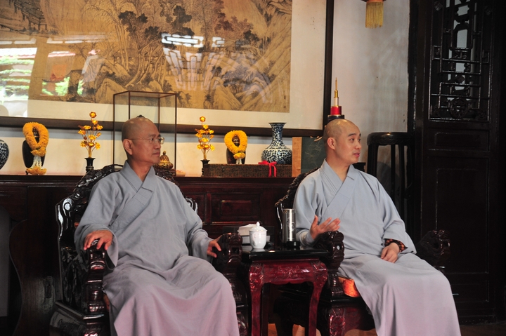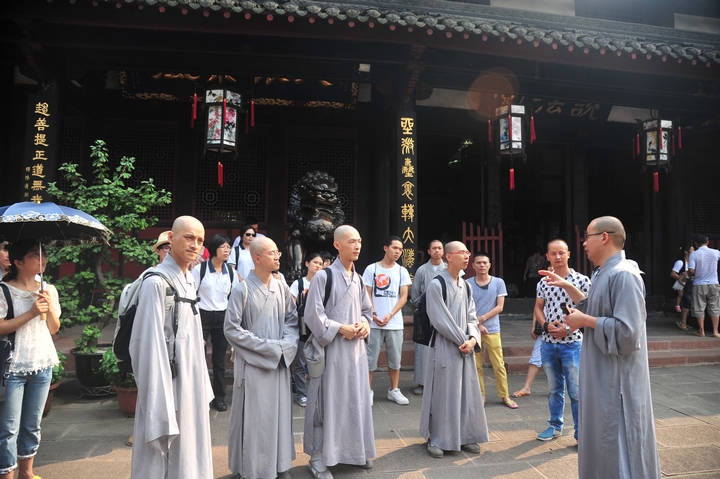 2013年8月16日,台湾法鼓山副住持果品法师率领参访团来到成都文殊院参观访问。来自法鼓山僧伽大学的六位法师及法鼓山世界青年会的二十名志愿者,受到文殊院方丈宗性法师、堂主宏开法师的热情接待。