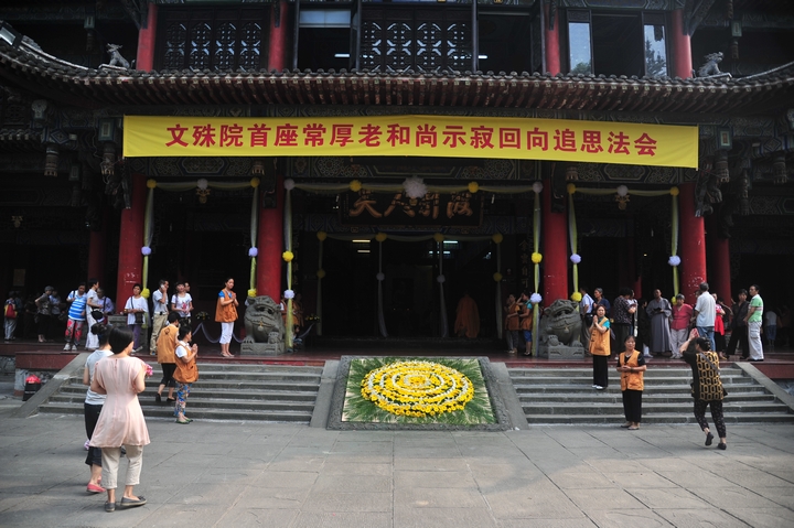 8月5日,为了表达佛门弟子对常厚老和尚的追思和缅怀,成都文殊院为老和尚举行了隆重的示寂回向追思法会。
