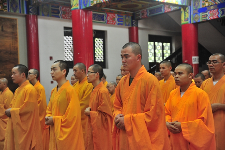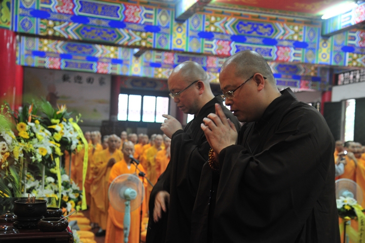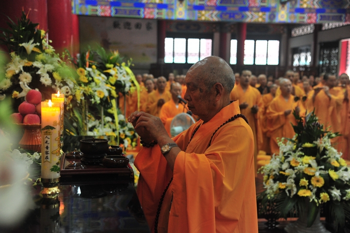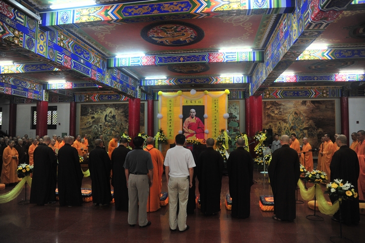 参加追思法会的僧众怀着沉痛的心情缅怀老和尚