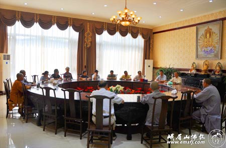 2013年8月5日上午,四川省佛教协会第三届汉传佛教讲经交流会协调会在峨眉山大佛禅院举行。四川省佛教协会会长永寿法师,副会长心定法师、演法法师,秘书长王立军,副秘书长宏开法师、满霖法师及省佛协有关职能部门工作人员参加此了次会议。