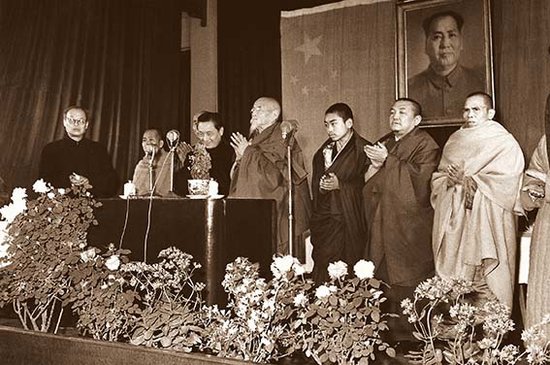 5月30日至6月3日,中国佛教协会成立大会和中国佛教协会第一届代表会议在北京广济寺举行,汉、藏、蒙古、傣、满、苗、撒里维吾尔(裕固)等7个民族的活佛、喇嘛、法师、居士代表120人出席了会议。会议通过了《中国佛教协会章程》和有关决议,推举第十四世达赖喇嘛、第十世班禅额尔德尼·确吉坚赞、虚云、查干葛根为名誉会长,选举圆瑛为会长。