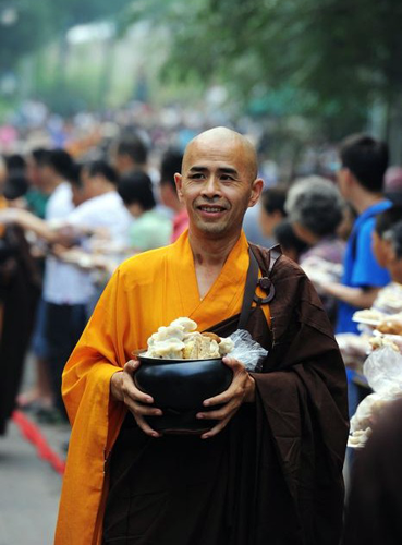 如法托钵的清净善业是三宝住世的表显,对世间是一大功德。