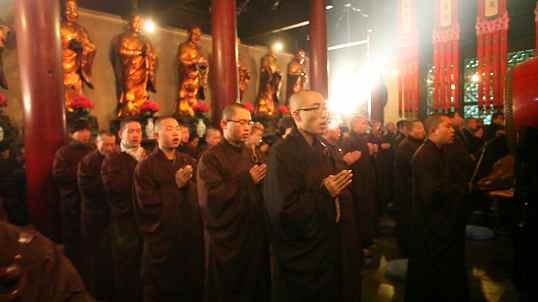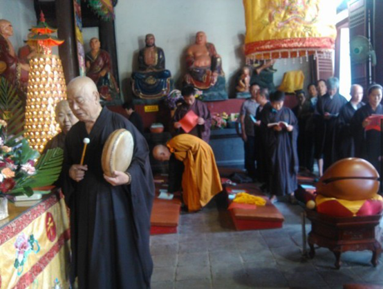 云峰寺法师在千亿圣号大念诵回向法会结束时集体念佛回向