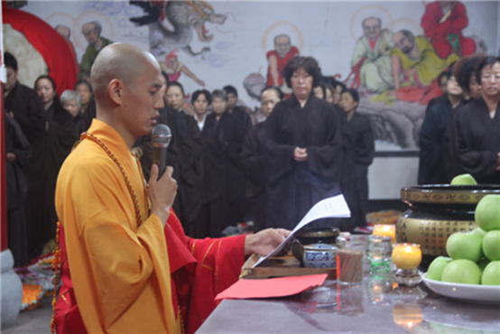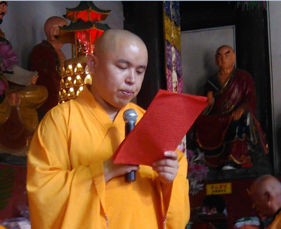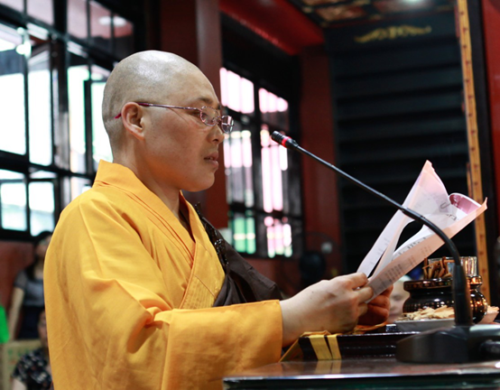 爱道堂昌悟法师宣读回向文并宣布第十三届“祈祷和平、祈福众生——千亿圣号大念诵”开始