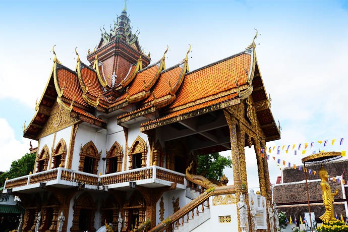 在4平方公里大的清迈古城内,大大小小的寺庙就有上百座,十步一寺,五步一庙,禅意处处,古韵绵绵。在此寻找一座寺庙,并非易事。正如片中的一句台词所说:“你要我在清迈附近找一个庙,简直比在茅草堆里找一根针还难。”