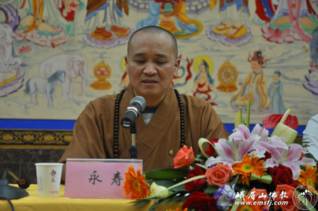 永寿法师对学僧开示。他说,在过去一年里,峨眉山佛学院在上级党政领导部门的领导下,在省佛协的关心指导下,在办学规模、层次、师资队伍、管理制度及硬件设施等方面都取得了优异的成绩。这是诸方善缘汇聚的结果、是各位领导、法师、工作人员辛勤努力的结果,在此代表峨眉山佛学院感谢大家的付出。永寿法师对佛学院的未来提出了三点期望:1.坚持以“智、行、悲、愿”为院训,以“学院丛林化,学修一体化”办学方针。使学院既能与时俱进,又有自我特色,在培养僧才的道路上再创辉煌。2.坚持“引进来,走出去”的学修理念,积极引进人才,不断加强师资力量。鼓励法师学僧外出参学,使法师学僧在交流学习中不断完善自我。3.希望各位学僧在新学年里勤修三学,学有所成,成能所用。