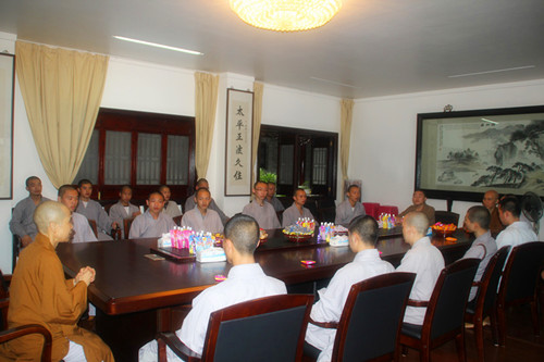 会客室中是暂停休息处 今天却妙语生花 上万下如法师在和来访人员交流
