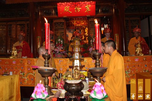 本寺自2013年8月6日(农历七月初一)启建地藏法会至9月4日(农历七月二十九)地藏菩萨圣诞日功德圆满。早、晚课随堂举行“地藏王菩萨祝圣普佛”,晚上于寒拾殿前施放五大士“瑜珈焰口”一堂,超度过去七世父母,历代祖先,冤亲债主,使之离苦得乐,往生莲邦,品位高增。祈愿以此共修功德回向正法久住,法运昌隆,民生安乐,社会祥和,祖国繁兴,世界和平;更祈一切众生罪业忏除,由此法会殊胜功德,人人福慧增长,身心自在,如意吉祥!