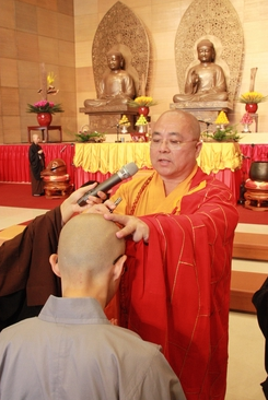 台湾法鼓山于2013年9月4日上午9点,在大殿举“2013年僧团剃度典礼”,有近8百位信众前往观礼,恭喜新戒法师圆满出家度众的宏愿。法鼓山方丈和尚果东大和尚代表僧俗四众,祝愿新戒法师“善护持清净戒体,精进修习,发大悲心,决不退转”。