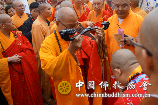 参加法会的诸山长老和嘉宾为柳州开元寺僧寮奠基仪式剪彩