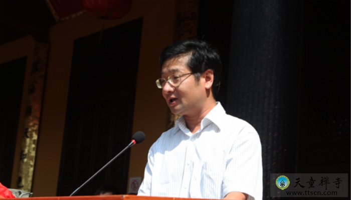 随后宁波市宗教事务局许伯强副局长,代表宗教部门发表讲话,对法会的顺利举行表示祝贺。并期望天童禅寺在今后的弘法过程中,要引领好佛教四众弟子,精进修学。为宁波市佛教教育作出最大的贡献,为社会的和谐发挥积极的宗教指导作用。
