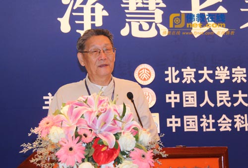 方立天教授分一个特定时代造就的佛教历史人物、一生的杰出贡献、在中国佛教史上的地位三方面全面评价了净慧长老的业绩、贡献和地位;他在讲话中对净慧长老在弘扬佛法、佛教文化建设、佛教寺院建设、佛教僧才培养方面的贡献做了总结;并就净慧长老作为“生活禅”的创立者、“人间佛教”的开拓者、佛教文化的阐扬者三方面对其在中国佛教史上的地位做了诠释和解读
