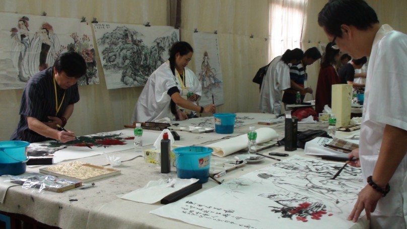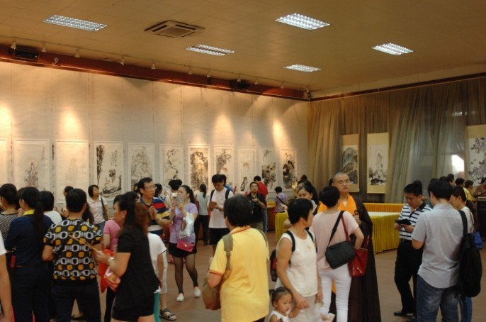 诵经法会结束后,各位高僧大德更为“广东禅宗六祖文化节名家书画展”做剪彩仪式。书画展内,一幅幅充满禅意的画卷、书法展现在信众的面前,可谓禅意绵绵,让信众大饱眼福。书画家们还现场挥毫,并把书画作品捐献给复明工程。明代画家莫是龙曾说:“画之道,所谓以宇宙在乎手者,眼前无非生机。”艺术家们将禅宗文化融入社会,融入生活,融入艺术。此次活动对承载禅宗文化具有重要的意义,同时也使广大民众的人文素养得到了提升。