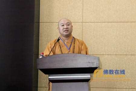 吉林省佛教协会会长、长春般若寺方丈成刚法师在论坛上发言