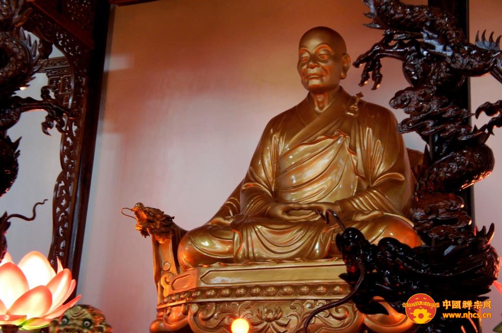 位于《六祖坛经》主讲堂身后的大殿为祖师殿,殿前竖立着泰国高僧赠送的素可泰佛像,大殿内供奉着六祖和神会、怀让、法海、行思四位侍者的金身像。
