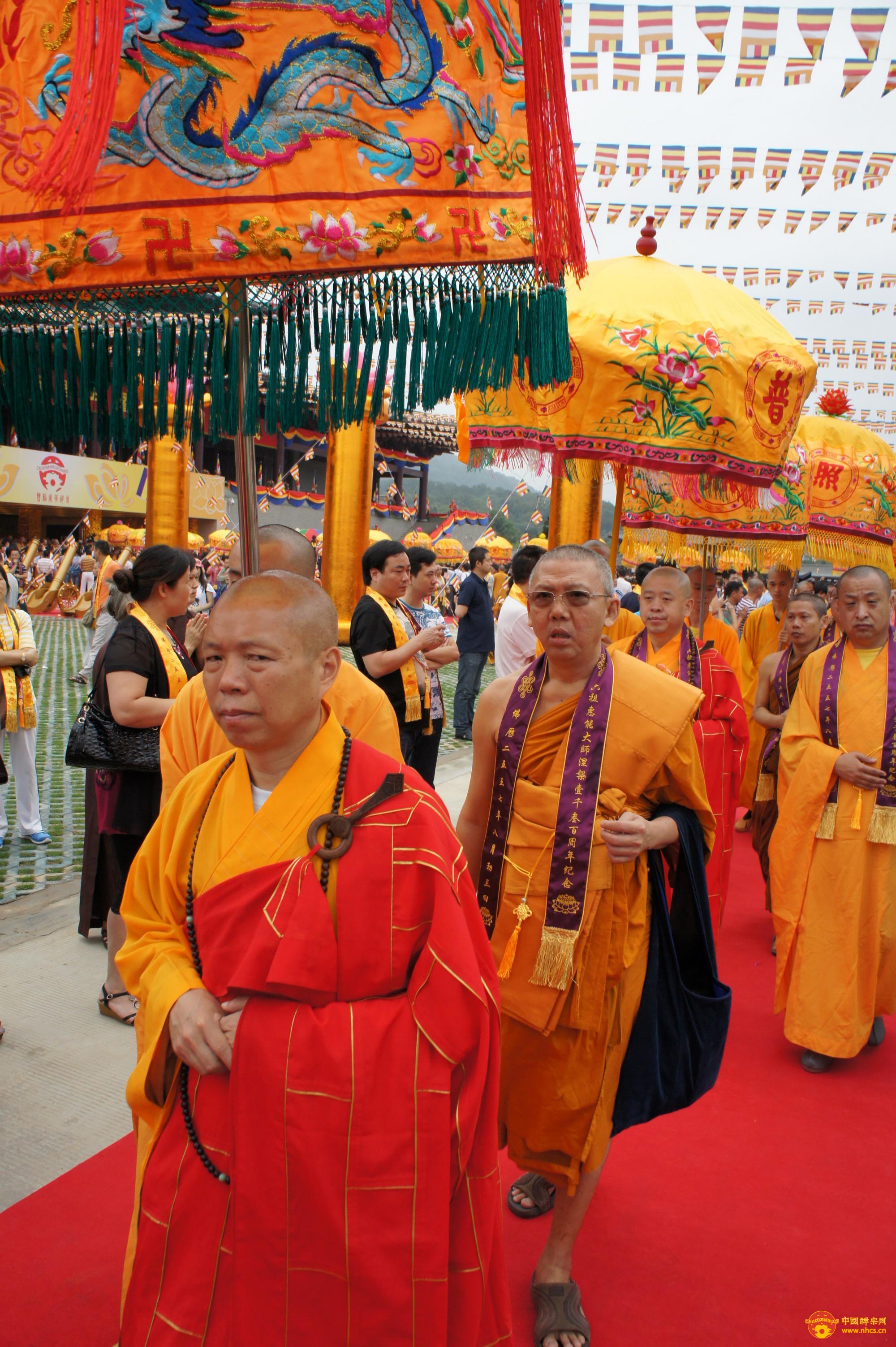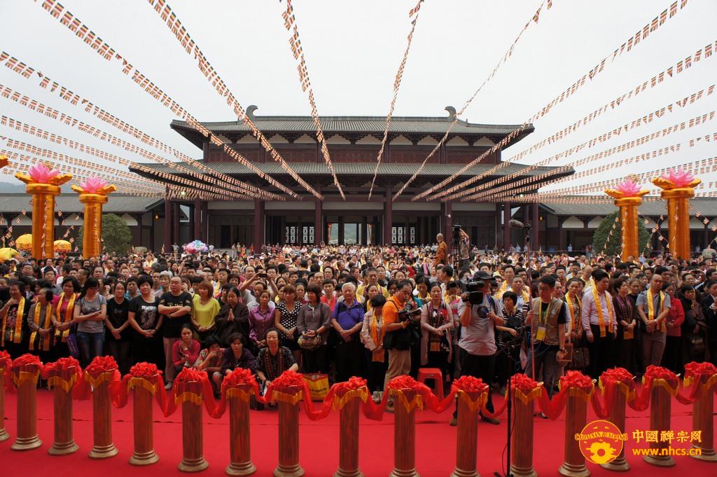 上午7时15分,十余万来自中国、韩国、日本、缅甸、斯里兰卡、泰国等国家和港澳台地区的高僧、信众,参加仪式。