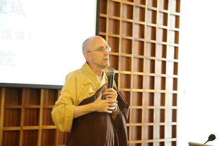 2013年9月20日上午,美国万佛城恒实法师在浙江杭州佛学院法云校区会议室举行讲座。讲座主题为“二十一世纪佛教的挑战与机遇”。
