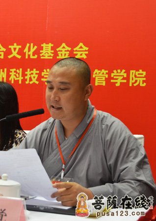 开幕式由寒山寺寒山书院教务长本觉法师主持。首先秋爽大和尚致欢迎词,说到:寒山寺是重视文化建设,并成立了寒山书院、文化研究院、禅意书画院、佛教图书馆、慈善中心、弘法部、青年佛学社、寒山寺佛学网、和合安养院、苏州和合文化基金会等等,培养僧才,弘法利生,济贫帮困,发展文化。在苏州科技学院设立了寒山教育奖,奖励品学兼优的贫困生和优秀的青年教师。2011年,寒山艺术会社移址寒山寺,与寒山寺禅意书画院合署办公;2012年又发行了《和合祖庭报》,这对寒山寺文化的发展起到了推动的作用。今天,寒山寺正以更加恢弘的襟怀和面貌,欢迎四海友人和八方来客。