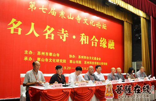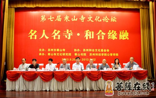 2013年9月21日,以“名人名寺·和合圆融”为主题的“第七届寒山寺文化论坛”在苏州会议中心隆重开幕。此次论坛会议为期两天。来自全国两百多位文化研究学者和嘉宾出席了论坛。