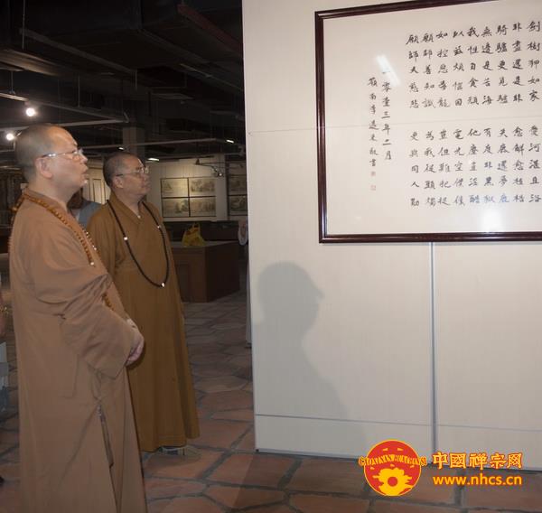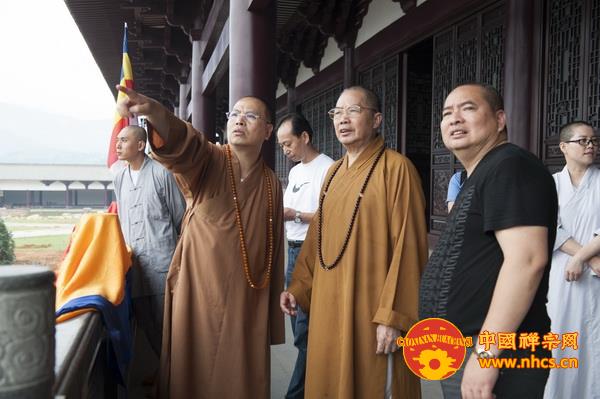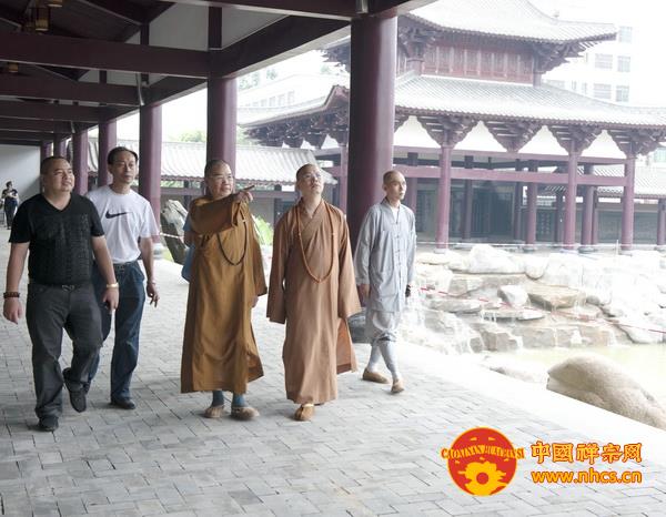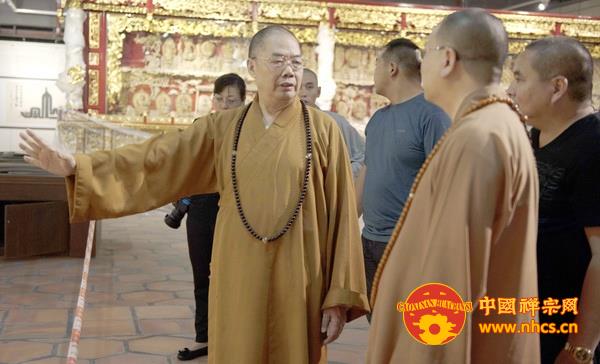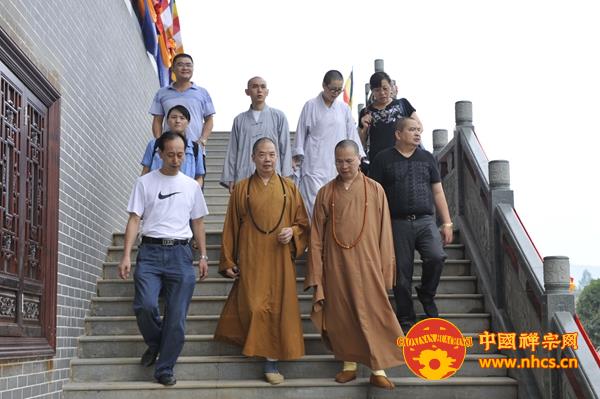 传正大和尚与曲江区副区长卢春燕等一行人引领达义法师参观曹溪讲坛