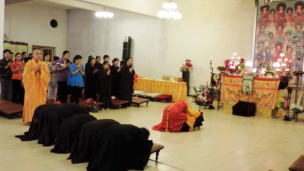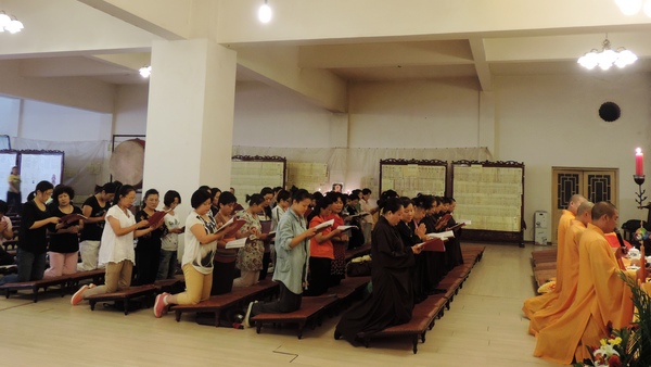 佛号声声,梵音缭绕,一称一礼,恭敬忏悔。在接下来的七天中,大众将在此代现世父母师长、过去六亲冤缘眷属,礼拜过去现在未来三世诸佛,忏悔不善之业,长养菩提之心,灭除宿世罪障,增长现世福慧。并以此清净功德,愿三涂离苦、国丰民安、众生向道、发菩提心。三涂六道,皆生佛国。