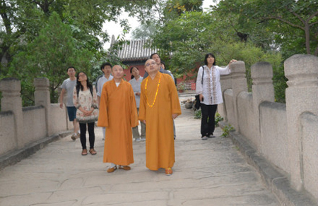 2013年9月8日下午,美国纽约东禅寺住持通智法师参访北京龙泉寺,受到龙泉寺翻译中心悟光法师和贤清法师的热情接待。