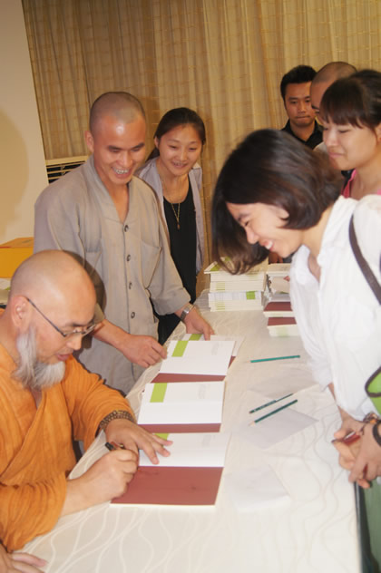 (智渡法师为与会者签名留念)