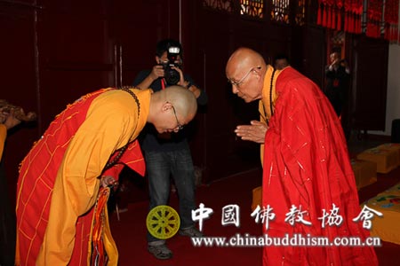 中国佛教协会咨议委员会副主席无相长老为普钰法师送位