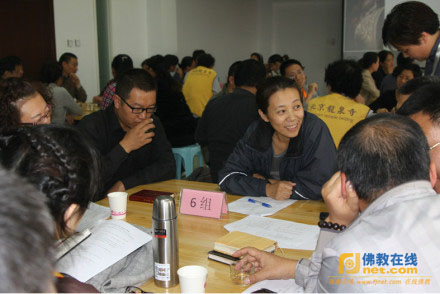 座谈会上,大家一起学习了学诚法师对于居士教育的相关开示,同时还进行了情景教学、带班经验交流、法师答疑等活动。