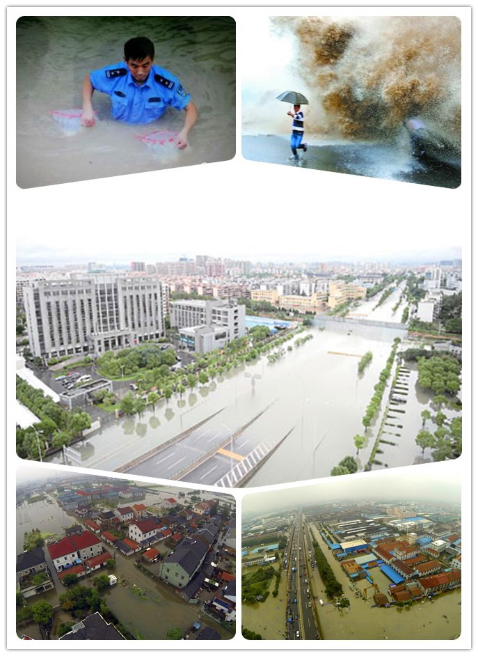 今年第23号强台风“菲特”虽然在福建登陆,但其巨大的威力痛击了浙江省受其影响,截至912时,全省11个市80个县(市、区)986个乡(镇、街道)874.25万人受灾,紧急转移103.92万人,倒塌房屋3.06万间;宁波余姚、奉化,湖州安吉,绍兴上虞等18(市、区)城区受淹。余姚整个城区变成了一片泽国,很多超市、饭店、批发市场都关了门,吃饭成了第一难事
