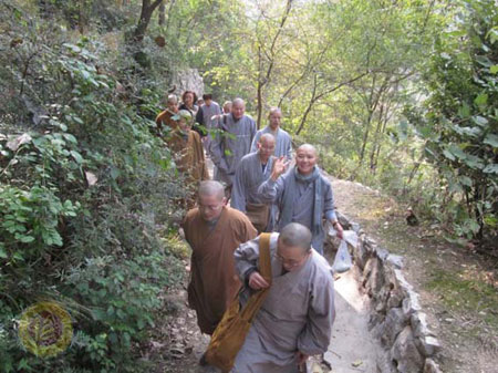 早上7时许,女众部全体师生从华严寺坐车出发,前往三论宗祖庭草堂寺。之后,徒步登上终南山,朝拜律宗祖庭净业寺。