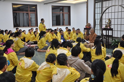 开学第一天,学员们跟随小众师父拜八十八佛忏,学习行、住、坐、卧四威仪,随众上殿、过堂、诵经……在晚间的小生活会中,大家了解到僧团中的“三个辗转”对于在家人工作和生活的指导意义,纷纷表示,决心将‘辗转相谏、辗转相教、辗转忏悔’的佛陀教法带回生活中,以不断促进人际关系的和谐。