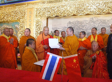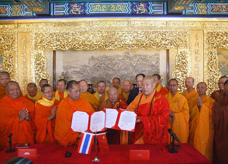 北京灵光寺与曼谷黎明寺缔结友好寺院签字仪式