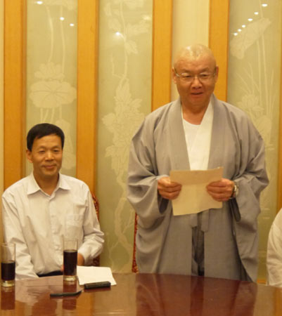 陕西省社会科学院宗教所副所长李继武接着发言,他回想起了五年前作为李利安教授的学生第一次见到彻鸿法师,适逢法师刚来大陆弘法,感觉到法师形单影只,为法师的弘法事业感到担忧。五年时间过去了,今天看到法师这么多的弟子济济一堂,由衷的感到高兴。接下来他说,希望居世界和学术界能有良好的沟通,不能盲目的排斥,要以包容的心态求同存异,秉持理性和包容。过去作为李教授的学生我们是一个单位,现在我在另一个单位,希望能在学术界扩大悟光法师回传密宗的影响,与香港中华密教加强交流合作,为密宗复兴多做些事情。