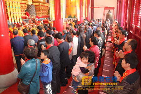 参加庆典仪式的佛教界人士有江苏省佛教协会副会长、无锡市佛教协会会长、无锡南禅寺方丈能开法师,广东省佛教协会副秘书长、惠州市佛教协会会长、惠州市永福寺住持妙峰法师,无锡市佛教协会副会长、江阴市佛教协会副会长兼秘书长林华居士,无锡市佛教协会副会长、江阴市佛教协会副会长、江阴君山寺方丈和融法师,无锡市佛教协会副秘书长、无锡南禅寺监院慧海法师,江阴市宝宏寺住持廓净法师,江阴市佛光寺住持风悦法师,江阴钓台寺监院隆禅法师,江阴钓台寺负责人黄纪高居士。来自上海、常州、苏州和江阴本地的居士信众1000余人参加了庆典。