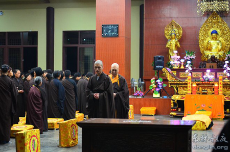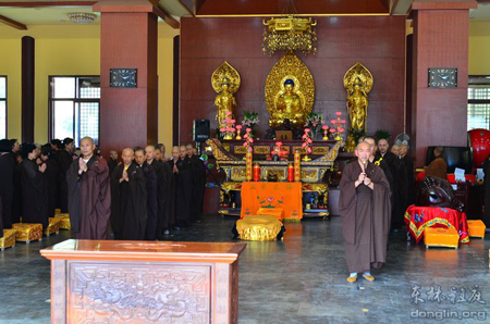 2013年10月12日下午3时至13日下午3时,江西庐山东林寺在香光讲堂一楼举行了每月一次的24小时经行念佛法会,法会由东林寺方丈大安法师主法,来自全国各地的1200余位四众弟子参加了此次经行念佛。