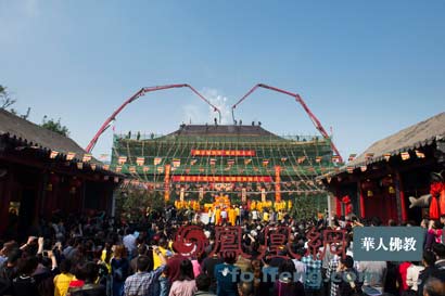 天津潮音寺大雄宝殿上梁圆顶祈福法会庄严举行(图片来源:凤凰网华人佛教 摄影:杨斌)