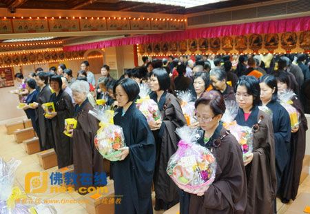 上午10时,澳门禅净中心庄严的大雄宝殿早就聚满诚心礼佛的信众,他们手捧着上好的供品,心中念着观音菩萨圣号,150位信众在澳门禅净中心住持觉仁法师带领下,讽诵《妙法莲华经观世音菩萨普门品》及向观音菩萨拜愿,坛场法喜充满,佛曲悠扬。
