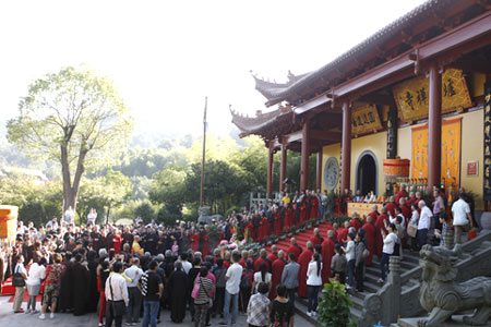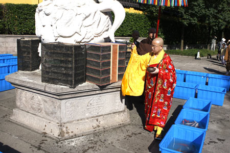 2013年10月13日(农历九月初九),适逢重阳节,也是我国第一个法定的“老人节”,浙江省绍兴市炉峰禅寺“敬老孝亲”重阳节放生法会在山门殿前隆重举行。