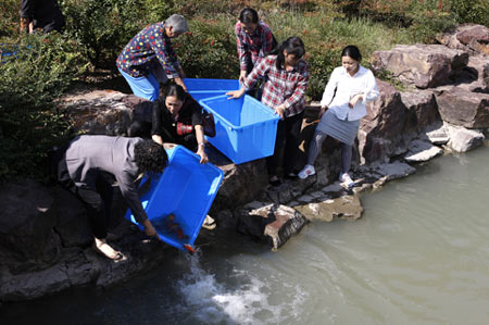 浙江绍兴炉峰禅寺举行重阳节放生法会