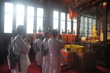 营员们礼拜玄奘大师顶骨舍利