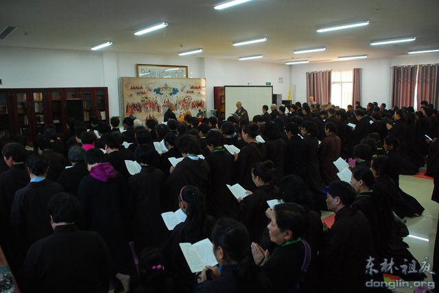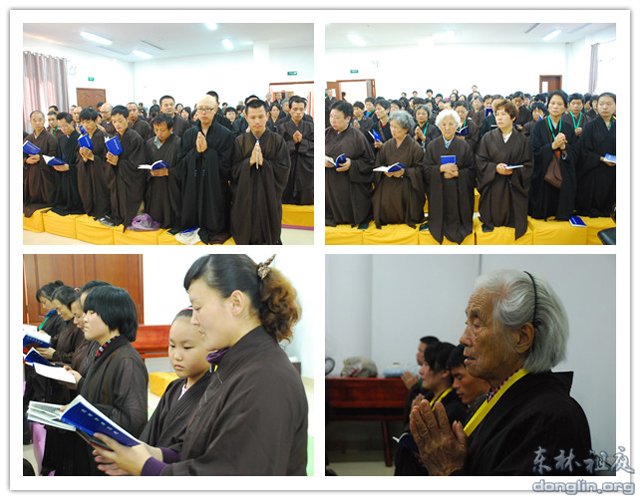 10月4日上午,正在举办首次佛七的东林寺净土苑,迎来又一件因缘殊胜的法事——隆重举行三皈五戒法会。东林寺方丈和尚大安法师应净土苑信众之请,不顾连日的劳碌,慈悲为130多位求受三皈五戒的净业行人传授三皈五戒。