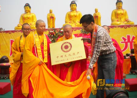 国家文物局授予周古寺《中国文化遗产》牌匾
