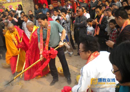 与会嘉宾领导为弥陀殿培土奠基